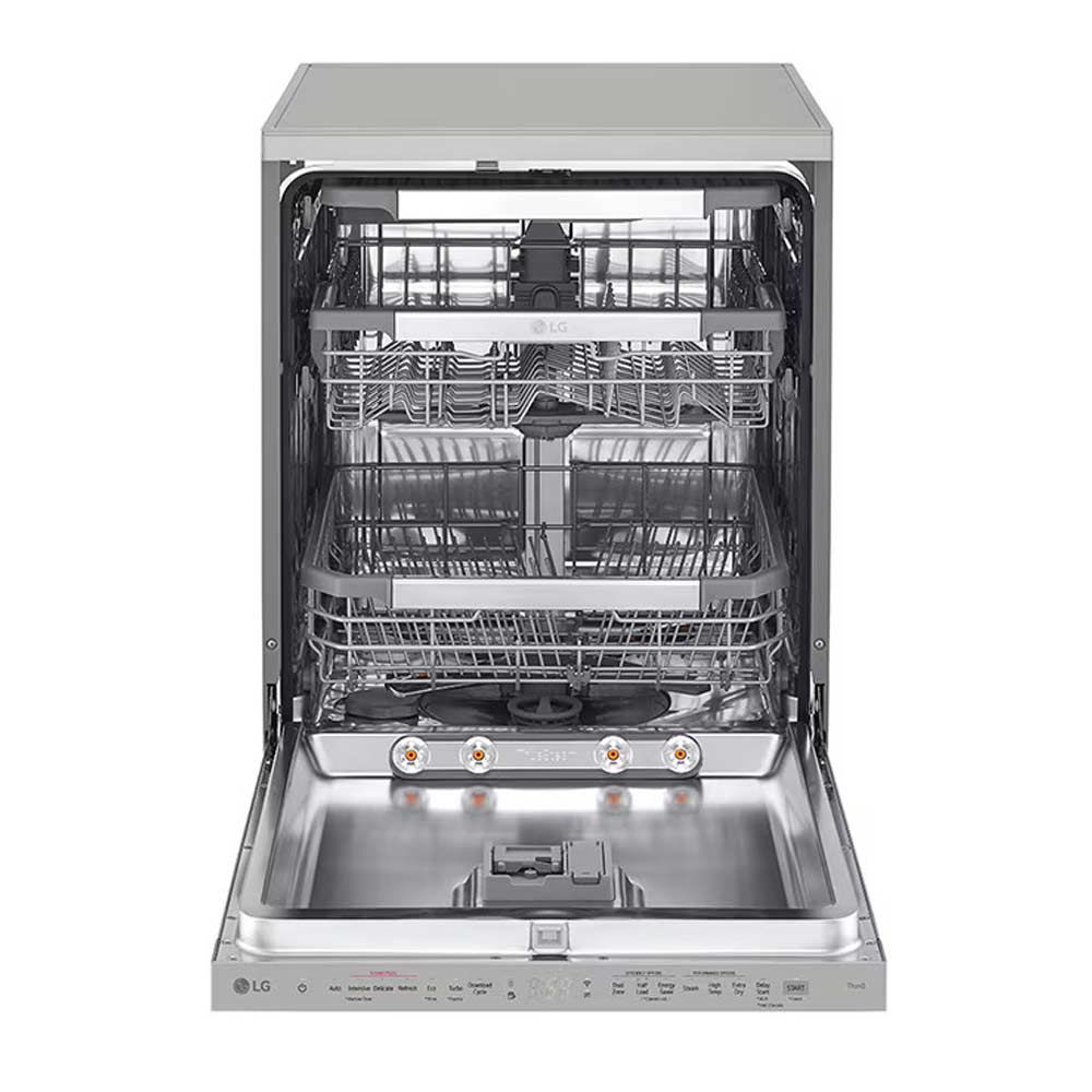 The LG DF455HPS is a free-standing dishwasher with 14 sets of tableware, C energy class, and Aqua Stop, in silver colour!