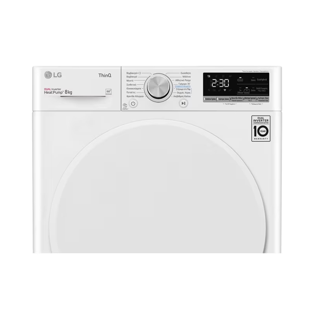 The LG RH80V9AV0N is a dryer with 8kg capacity, Wi-fi, and Quick 30' program, in white colour!