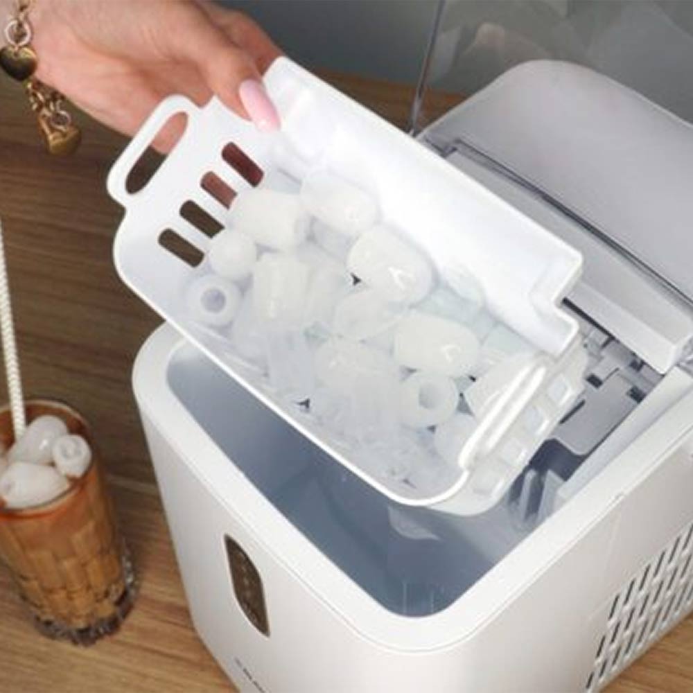 The BLAUPUNKT IMB201 is a portable home ice maker producing bullet-type ice cubes in just 8-9 minutes, with a capacity of up to 12 kg per day. It features choice of cube sizes (6-7 g or 8-9 g), 1L water tank, 0.6kg ice storage bin, one-button control, self-cleaning mode, and compact dimensions (≈ 20.6 × 26.8 × 28.2 cm).