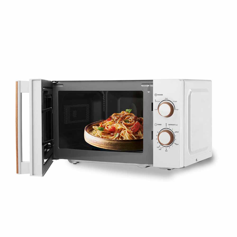 The IZZY IZ-8006 is a wooden white microwave oven with 20L capacity, 1050W input power and 5 adjustable power levels for versatile heating and defrosting. It features a 35-minute timer and simple rotary controls — perfect for everyday reheating, defrosting and basic cooking. Finished in black with wooden accents for a stylish kitchen look.