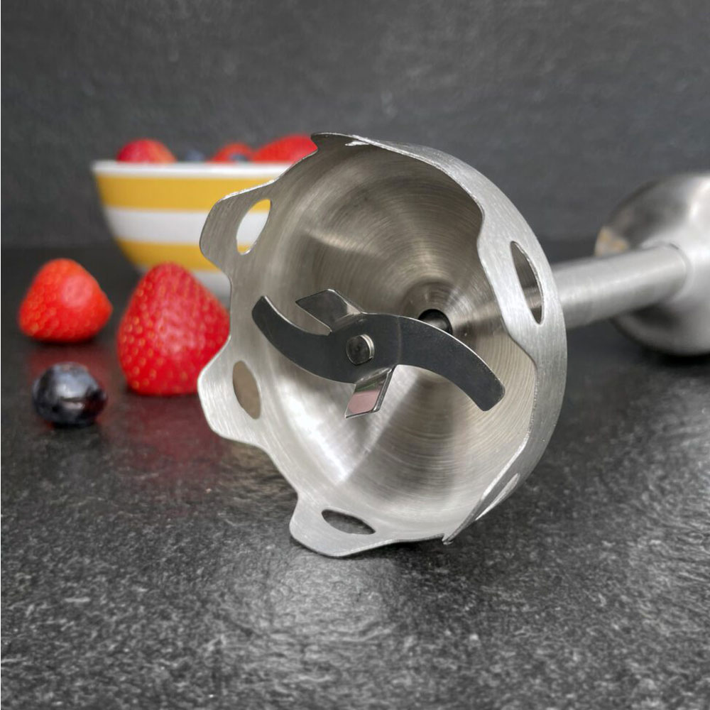Smoothly blending fruit and vegetables is made possible by the strong 1100W motor and the two-winged stainless-steel blades, which guarantee long-lasting use and optimal efficiency. Additionally, you can choose the right amount of revolutions for the products you're mixing thanks to the blender's two speeds.