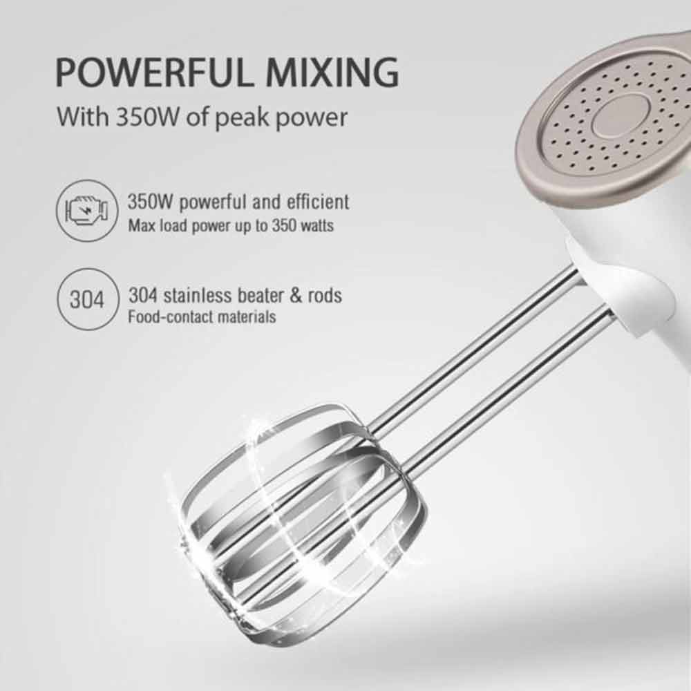 The MATESTAR PLM-M350W is a comfortable hand mixer with turbo five speed settings and power of 350W!