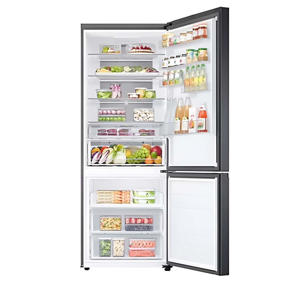 The SAMSUNG RB53DG703EB1EF is a spacious, freestanding fridge-freezer combi featuring a modern bottom-mount design with smart, energy-efficient technologies. It boasts an impressive 538 L total net capacity—approximately 370L for the fridge and 168L for the freezer—while maintaining a compact 711 mm depth for seamless kitchen integration.