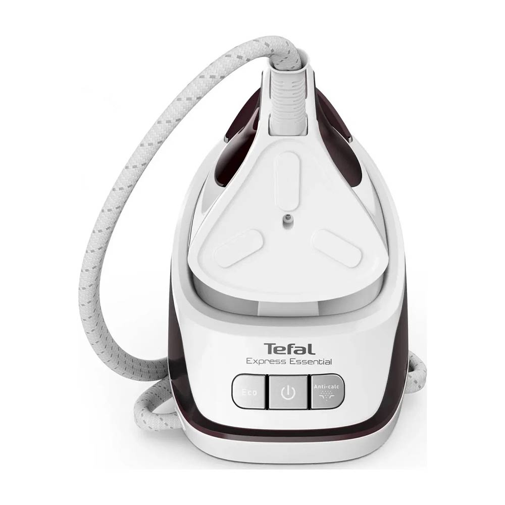 The TEFAL SV6120 is a steam iron press with 5.5 bar pump pressure, up to ~120 g/min continuous steam, and powerful steam bursts (~320 g/min) for efficient wrinkle removal. It features a large water tank for fewer refills, vertical steaming for hanging garments, and a soleplate designed for smooth glide. Ideal for fast, high-performance ironing.