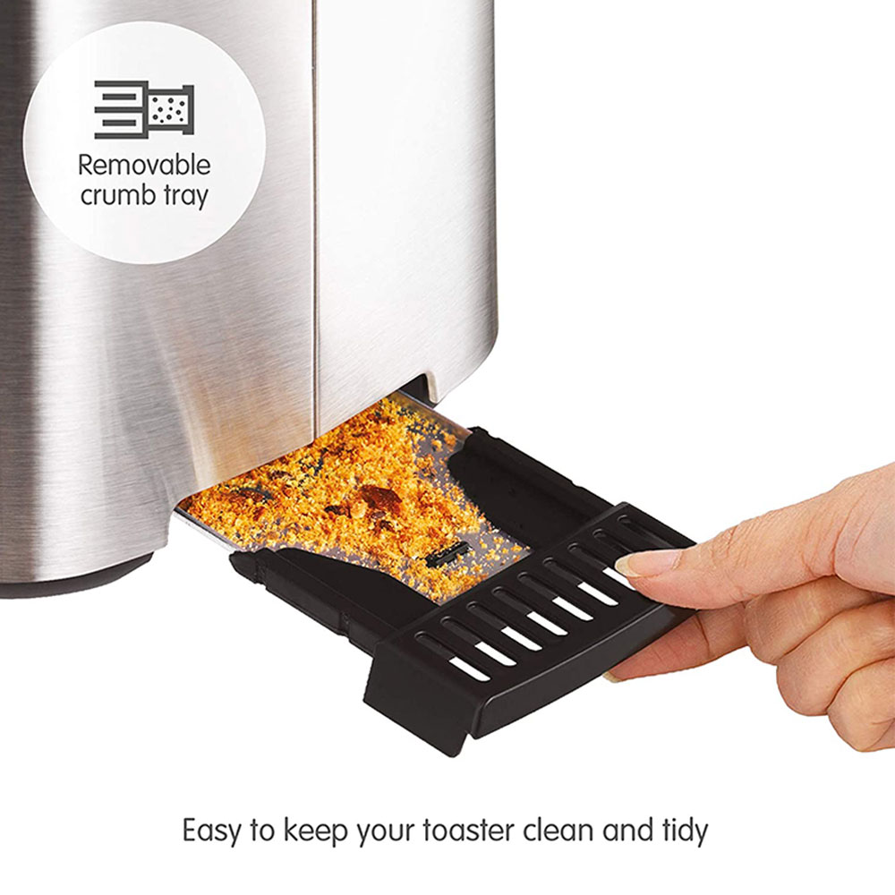 The MORPHY RICHARDS 222067 is a sleek, contemporary style of the Equip stainless steel two-slice toaster. It makes it suitable for any type of kitchen. Simple to use, with adjustable browning control that guarantees consistently excellent toast to your liking. Your new toaster will be suitable for every occasion thanks to its defrost and reheat settings, detachable crumb tray, and cable storage that makes it simple to store your toaster away.
