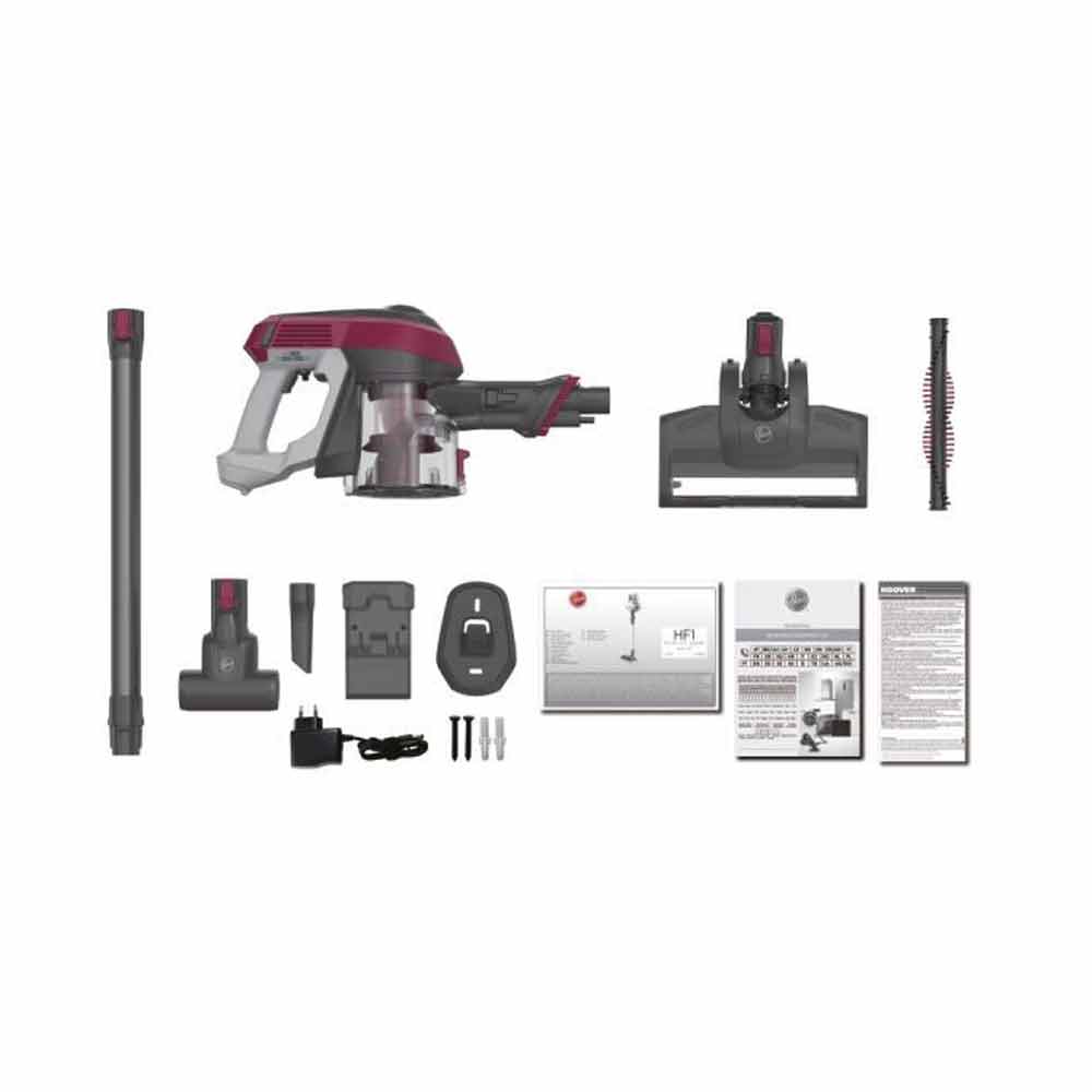 The HOOVER HF110P 011 is a bagless vacuum cleaner with 0.9 liters bin capacity, and 21.6 voltage, in purple colour!