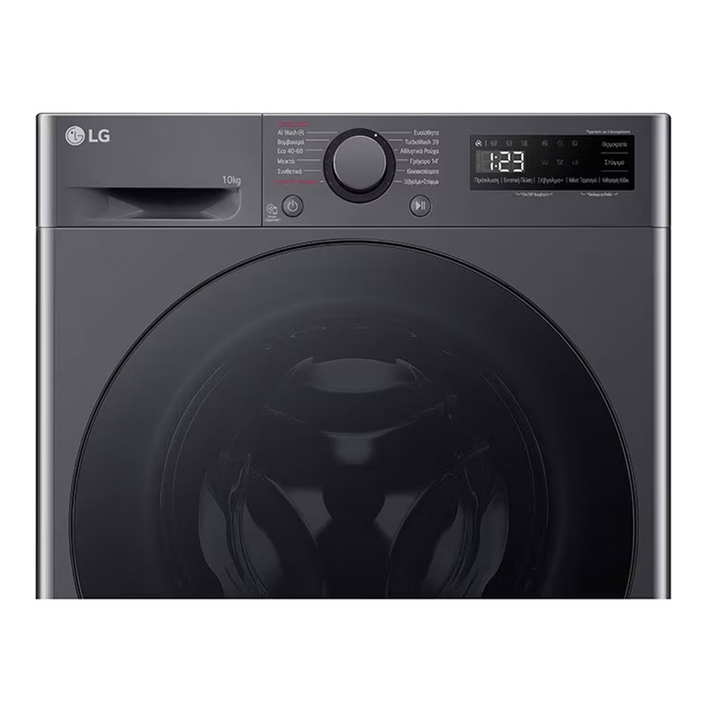 The LG F4R5010TSMB is a washing machine with 10kg capacity, TurboWash 39', Quick 14', and steam program, in graphite black colour!